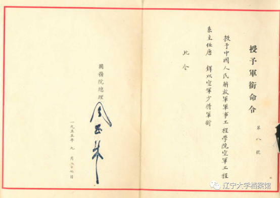 1955年9月,唐铎同志被授予中国人民解放军空军少将军衔