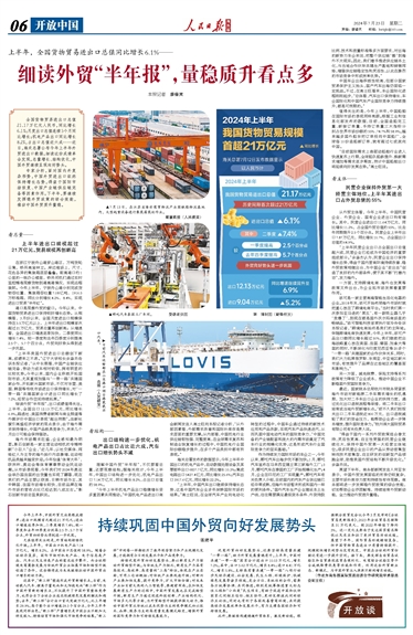 人民日报海外版访余淼杰|上半年,全国货物贸易进出口总值同比增长6.1%——细读外贸“半年报”,量稳质升看点多-国产一区二区日本在线